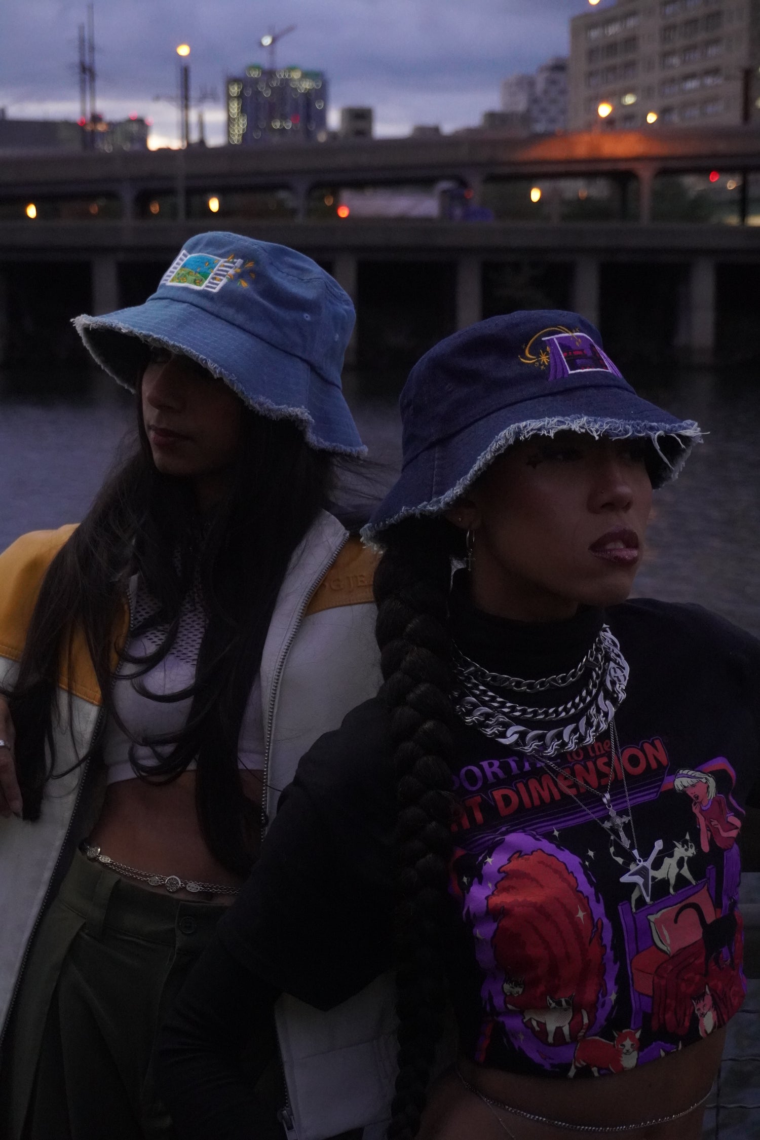 "Midnight" Embroidered Distressed Denim Bucket Hat